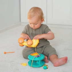 Die lustige WOOPIE Zieh-Schnecke bietet gleich vier Spiele in einem: Metallophon/Xylophon in einem abnehmbaren Gehäuse, eine Abschussbahn für das Mini-Auto, drehbare Zahnräder und Ziehen/Push-along an einer Schnur. Sie fördert die Feinmotorik, das Hörvermögen und das logische Denken, während die leuchtenden Farben die visuelle Wahrnehmung anregen.