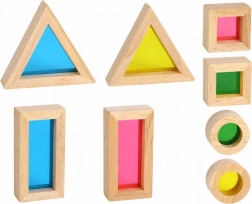 Dank der transparenten bunten Einsätze verändern die Blöcke bei Aneinanderlegen ihre Farbe, was Kindern hilft, Farben zu erkennen und zu kombinieren. Das Stapeln und Bauen mit diesen Blöcken fördert Fähigkeiten wie Kreativität und Vorstellungskraft.