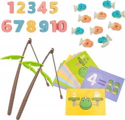 Zwei Angeln und bunte Figuren machen aus dem Lernen ein Geschicklichkeitsspiel, das Griffkraft, Geduld und die Hand-Auge-Koordination fördert.