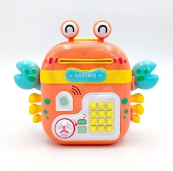 Diese bunte Krabbe ist mehr als nur eine Sparbüchse – sie ist interaktiver Tresor, Sparbüchse und Kinder-Rucksack in einem. Kinder können darin Münzen, Banknoten und kleine Schätze aufbewahren, ein eigenes Passwort eingeben und realistische Elemente genießen, wie eine Tastatur, eine imitierte Fingerabdruckleser und einen Drehknopf zum Öffnen.