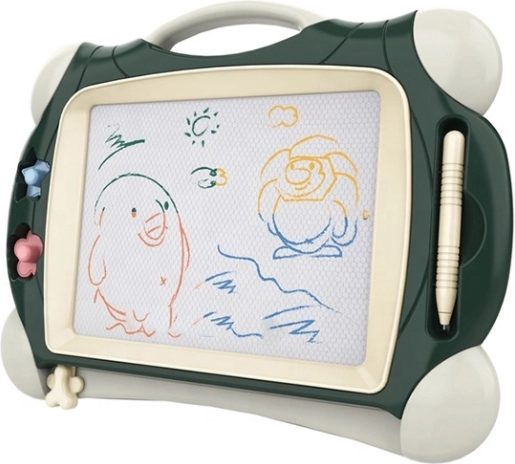 Farbenfrohe magnetische Zeichentafel mit 2 Stempeln in Grün