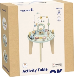 Entdecken Sie den holzigen Montessori-Aktivitätstisch TOOKY TOY, der dank vielfältiger Aktivitäten Kinder lange beschäftigt. Er fördert die Standposition, entwickelt die Feinmotorik, die Hand-Auge-Koordination, logisches Denken und Kreativität. Enthalten sind ein Motoriklabor, eine Formensteckbox, Zahnräder und ein Zug. Hergestellt aus Holz mit ungiftigen Farben.