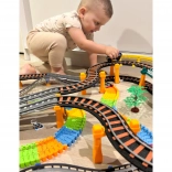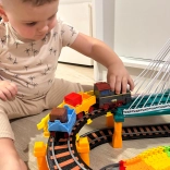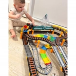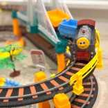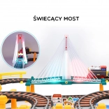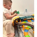 Dieses große, kreative WOOPIE-Set kombiniert zwei beliebte Spiele: elektrische Eisenbahn und Rennauto. Dank getrennter Rundstrecken können Kinder gleichzeitig mit Zug und Auto fahren, unterschiedliche Streckenkonfigurationen bauen und beobachten, wie der Zug das zweistöckige Viadukt mit Lichteffekten überquert.