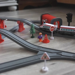 Die Lokomotive und das Zubehör haben ein realistisches Aussehen im modernen Design, was Kindern Spaß bereitet und zugleich Grundkenntnisse zu Verkehrssignalen vermittelt.