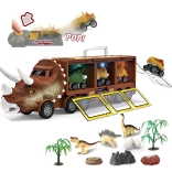 Unser Dinosaurier-Lkw ist wirklich unglaublich und ideal für jedes Kind, das Dinosaurier und Autos liebt. Das Kind kann in die fantastische Welt der Dinosaurier eintauchen und viele Abenteuer erleben. Im Inneren des großen Lkws befinden sich 3 kleine Dinosaurier-Autos. Das Set umfasst auch einen Werfer, der den Spaß erhöht. Einfach platzieren, klicken und abfeuern!