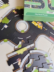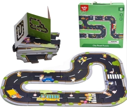 Dieses kreative Straßenpuzzle aus festem Karton verwandelt jeden Boden in eine lebhafte Stadt. Die Teile lassen sich wie ein Puzzle leicht verbinden und ermöglichen unzählige Streckenkombinationen – von einfachen Rundkursen bis hin zu komplexen Straßen mit Verkehrszeichen. Die praktische Inspirationsbroschüre hilft Kindern, erste Strecken zu bauen, und führt sie spielerisch an das Thema Verkehr heran.