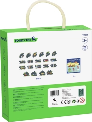 Das Set enthält 21 Teile und ein Heft mit Streckenideen. Kinder bauen ihre Stadt genau nach ihrer Fantasie.
