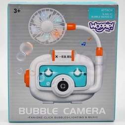 Die Maschine für bunte Seifenblasen in Form einer Kamera der Marke Woopie ist ein tolles Spielzeug für Kinder. Diese Kamera bietet nicht nur Seifenblasen, sondern auch Lichteffekte, die wie ein Blitz aussehen, einen Ventilator, der die Blasen weiter weg bläst, sowie eine angenehme Melodie für noch mehr Spaß. Kinder können Fotograf spielen und anschließend gemeinsam den Blasen nachjagen. Im Set enthalten sind außerdem ein Behälter für Seifenblasenflüssigkeit und eine Trageschlaufe, damit man die Kamera um den Hals tragen kann.