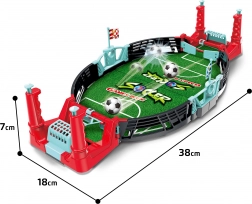 Das Spiel enthält ein kompaktes Spielfeld mit Toren, die sicher und geeignet für kleine Kinder sind. Das farbenfrohe Design zieht Aufmerksamkeit an und lädt zum Spielen ein.