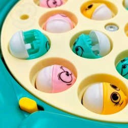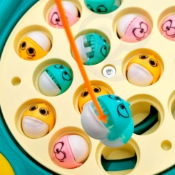 Setzt du auf Geschwindigkeit, Reaktion und Präzision? Der grüne Dinosaurier verbirgt einen rotierenden Teich voller bunter Fischchen, die sich öffnen und schließen. Deine Aufgabe: Mit der Angel so viele Fischchen wie möglich fangen, bevor die Runde endet – eine spaßige Herausforderung für kleine und große Angler.