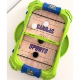 Das einzigartigste Familienspiel für alle Altersgruppen. Fördern Sie die Entwicklung Ihres Kindes und haben Sie gemeinsam Spaß! Die Spieler spannen das Gummiband präzise und schießen den Puck so, dass er das Feld mit der höchsten Punktzahl erreicht. Jeder hat 3 Versuche. Der Spieler mit der höchsten Punktzahl gewinnt! Das Spiel unterstützt nicht nur die Konzentration des Kindes, sondern festigt auch mathematische Fähigkeiten durch das Addieren der Punkte.