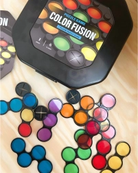 Die LED-Beleuchtung hebt die transparenten Plättchen hervor und lässt Kinder beobachten, wie sich Farben überlagern und neue Nuancen entstehen – ein spielerischer Weg, Farbtheorie zu verstehen.