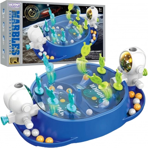 Das Spiel UFO-Schlacht ist für zwei Spieler konzipiert und fördert auf spielerische Weise die Koordination, Konzentration und die schnelle Reaktion der Kinder. Ziel ist es, die Astronautenfiguren auf dem Spielfeld zu platzieren und sie mit Kugeln durch Ziehen des Auslösers abzuschießen. Der Gewinner ist derjenige, der die Astronauten zuerst trifft.