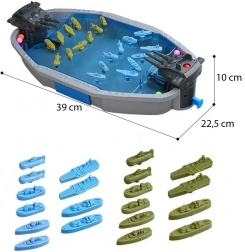 Bunte Schiffe und U-Boote auf dem Spielbrett schaffen eine realistische Schlacht, die Kinder vom ersten Schuss an ins Spiel zieht.