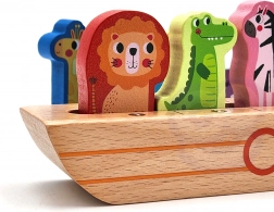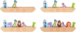 Das Spiel von Tooky Toy mit dem Thema Arche Noah ermöglicht es Kindern, Holzfiguren von Tieren anhand von Vorlagen aus dem beiliegenden Buch zu puzzeln. Jede Figur hat zwei Seiten, eine zeigt nach rechts und die andere nach links, was die Variabilität und Komplexität beim Lernen erhöht. Die Aufgabe des Spielers ist es, alle Figuren korrekt auf der Arche gemäß der gewählten Aufgabe zu platzieren und dabei logisches Denken einzusetzen, um die richtige Position und Richtung der einzelnen Tiere zu bestimmen.