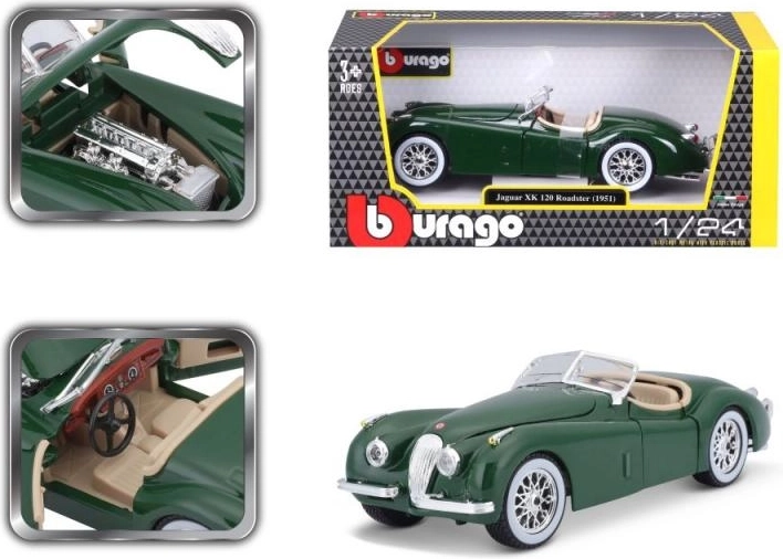 Ergänzen Sie Ihre Bburago-Sammlung um weitere großartige Automodelle im Maßstab 1:24. Druckgussmodell aus der Serie Bburago 1:24 Jaguar XK 120 Roadster (1951) grün