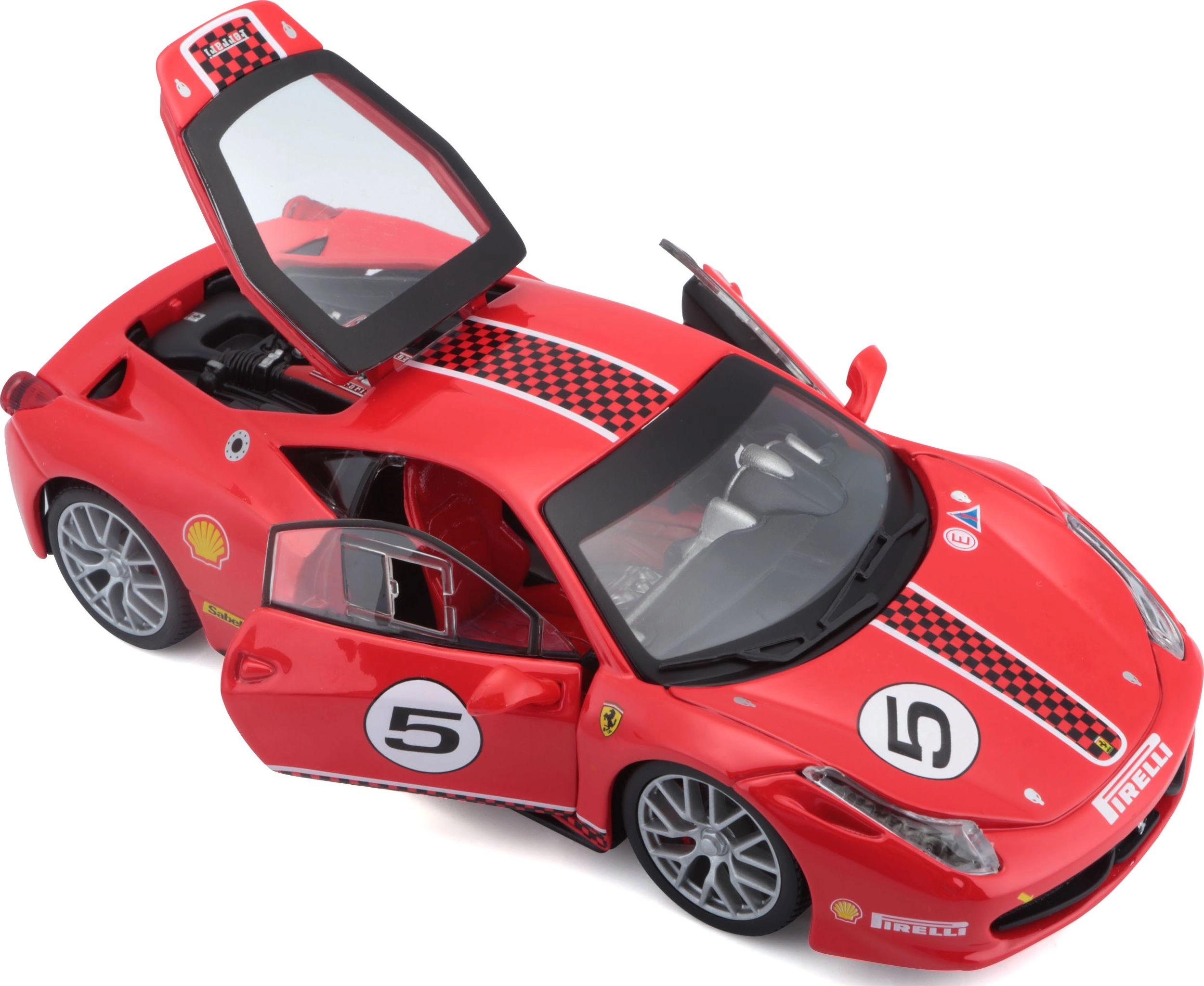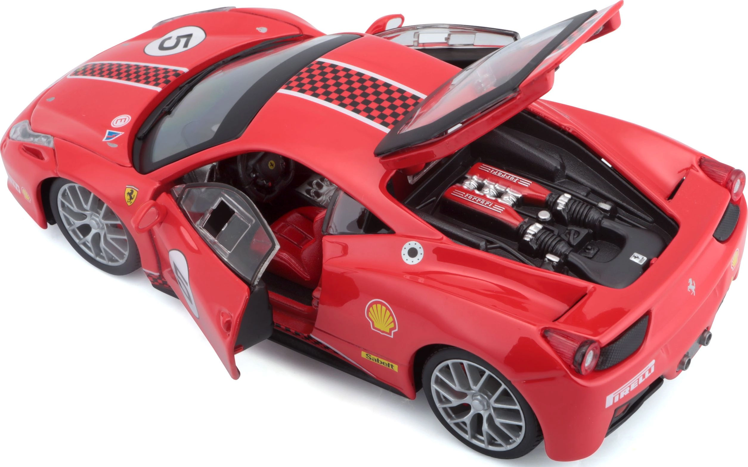 Dieses lizenzierte Modell des Ferrari 458 Challenge überzeugt durch hochwertige Karosserieverarbeitung, präzise Bedruckungen und stimmige Proportionen. Dank der öffnenden Teile und des detailreichen Innenraums ist es sowohl zum Ausstellen als auch zum Spielen perfekt geeignet.