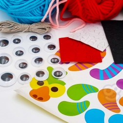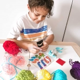 Das Set enthält 6 verschiedenfarbige Garne, mit denen Kinder bunte Monster gestalten können.