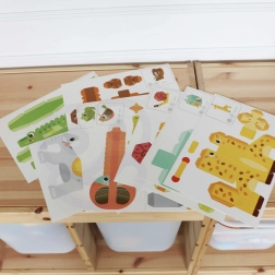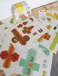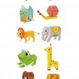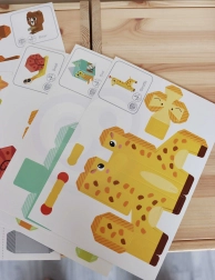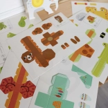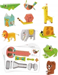 Dieses kreative Set enthält alles, was Kinder zur Herstellung bunter 3D-Papiertiere brauchen. Auf 5 Bögen finden sich Teile für 10 Modelle, die sich leicht per Hand herauslösen lassen – ohne Schere. Der Zusammenbau ist intuitiv: falten, die markierten Flächen mit Kleber bestreichen und verbinden.