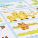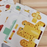 Jedes Blatt enthält zwei Motive, insgesamt entstehen 10 verschiedene Tiere – vom Elefanten und Löwen bis zum Krokodil und Frosch. Spaß und Lernen in einem.