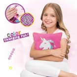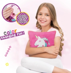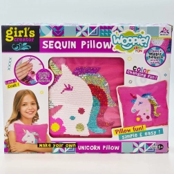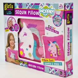 Entdecke die Welt der Mode und des Gestaltens mit dem Kreativset Woopie ART&FUN. Einfaches Nähen gelingt auch Einsteigerinnen und Einsteigern – es braucht nur etwas Vorstellungskraft und Geduld. Dank der wendbaren Pailletten wird dein Einhorn-Kissen strahlen und beim Darüberstreichen wie durch Zauberhand die Farbe wechseln. Die Materialien sind angenehm anzufassen und frei von scharfen Kanten.