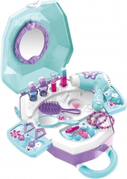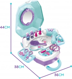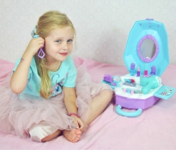 Der Kinder-Rollkoffer verwandelt sich im Nu in einen kompletten Frisiertisch mit Spiegel und ausziehbarer Arbeitsfläche. Die praktische 2-in-1-Ausführung sorgt für Spaß zu Hause und auf Reisen und ermöglicht zugleich die ordentliche Aufbewahrung aller Accessoires.