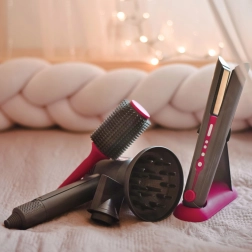 - Erforderlich: 4 x AA 1,5V Batterien – 2 für den Föhn und 2 für das Glätteisen (Batterien nicht im Lieferumfang enthalten)