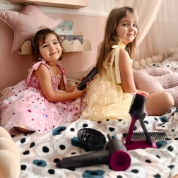 - Das Komplettset enthält: Spielzeugföhn, Aufsätze, Bürste, Entwirrkamm usw.