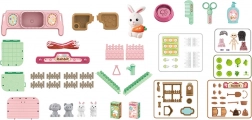 Kinder können mit diesem niedlichen Set Bauernhof spielen, das verschiedene Elemente des Farmlebens und der Pflege von Häschen umfasst.