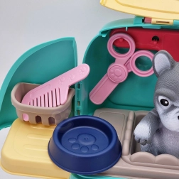 Enthält eine Hundefigur, Kamm, Schere, Zubehörkorb und mehr.