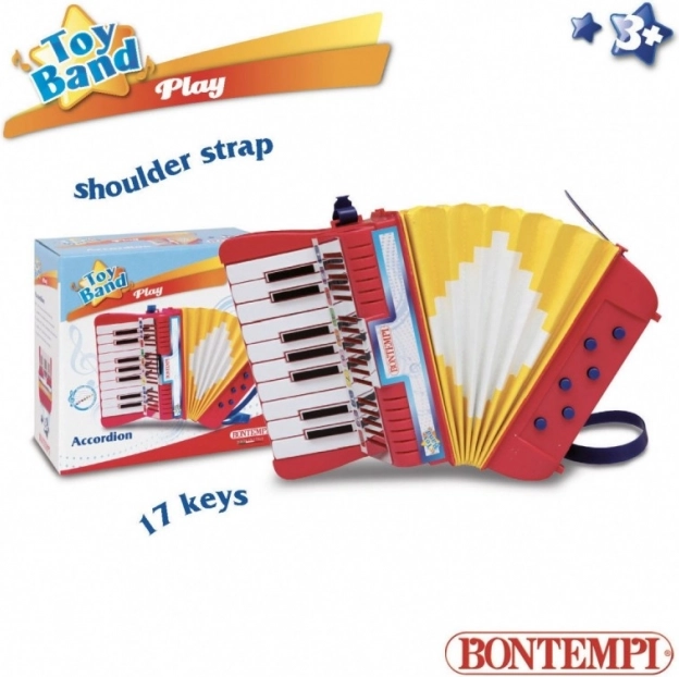 Entdecken Sie die Freude an der Musik mit dem Kinder-Akkordeon von BONTEMPI. Dieses leichte Instrument verfügt über 17 Tasten (C–E), 6 Bassknöpfe und bequeme Trageriemen für einfaches Halten. Eine tolle Wahl für kleine Anfänger, die Rhythmus, Gehör und Motorik entwickeln möchten.