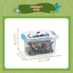 Lieferumfang: 12 Dinosaurierfiguren, 10 Baum-/Pflanzenfiguren, weiche Spielmatte, Tragkoffer.