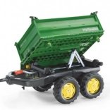 Der Rolly Toys Anhänger ist ein stabiler zweiachsiger Kippanhänger, der zu drei Seiten gekippt werden kann. Dieser grüne Anhänger ist mit robusten Rädern ausgestattet, die einen einfachen Transport der Ladung ermöglichen. Er ist mit allen Rolly Toys Fahrzeugen kompatibel, mit Ausnahme der Modelle rollyKids und RollyDumperKid.