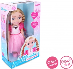 Singende Puppe Maruška bietet ein magisches Erlebnis mit Auszügen aus beliebten Märchen. Werden Sie Teil der Märchenwelt, in der das Gute immer gewinnt. Ihre Halskette blinkt beim Singen, und es kann zwischen zwei Lautstärkestufen für den idealen Hörgenuss gewählt werden.