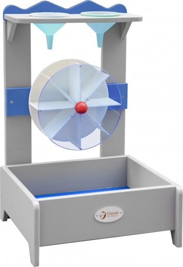 Entdecken Sie die Faszination spielerischer Physik mit der Kinder-Wassermühle CLASSIC WORLD EDU. Zwei obere Trichter ermöglichen es, die Flussrichtung – und damit den Drehsinn des Wasserrads – zu ändern: im oder gegen den Uhrzeigersinn. Das Spiel fördert ganz natürlich die sensorische Wahrnehmung, das logische Denken und selbstständiges Experimentieren.