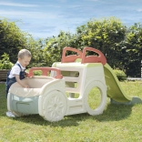 Das Abenteuerauto ist der ideale Ort für Outdoor-Spaß für die Kleinsten! Dieser außergewöhnliche Spielbereich, inspiriert von einem Offroad-Fahrzeug, versetzt Kinder in die Welt spannender Fahrten und Abenteuer.
