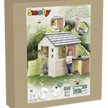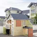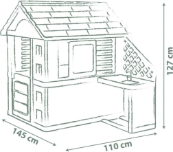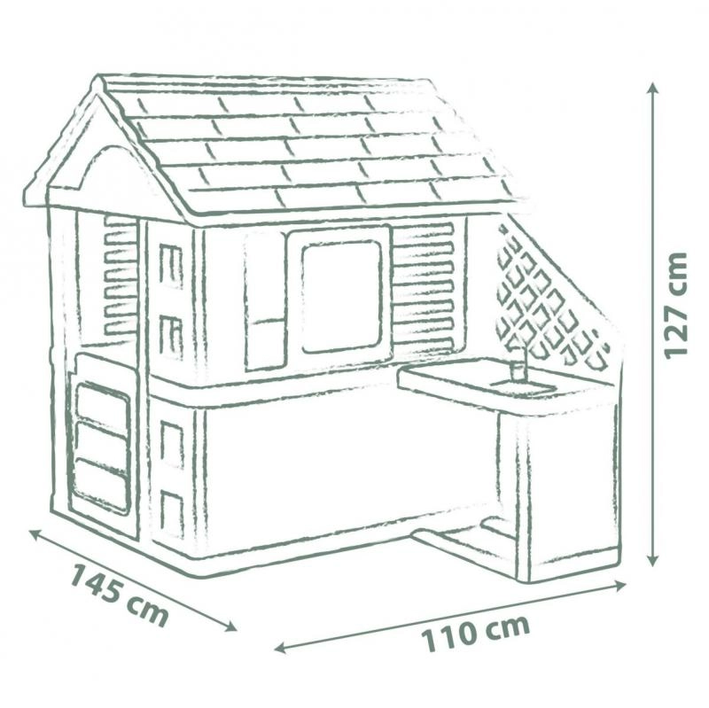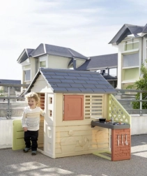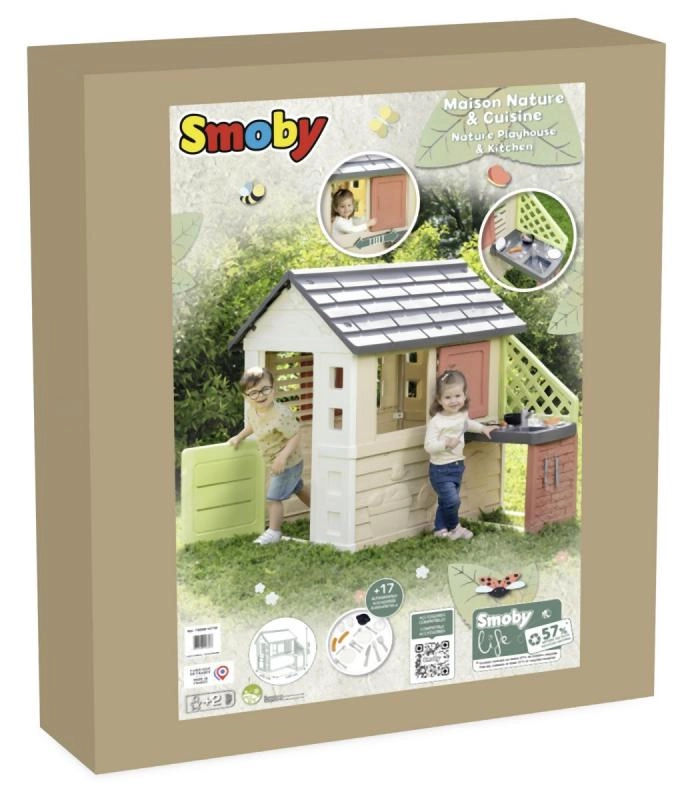 Smoby Nature ist ein stabiles und widerstandsfähiges Gartenhaus, das für den täglichen Einsatz im Freien konzipiert ist. Es umfasst einen Anbau mit Küche mit Grill und Spülbecken (Attrappe) sowie umfangreiches Zubehör, mit dem Kinder ihre Fantasie entfalten und Kochspiele nachahmen können. Die neutralen Farben fügen sich in jeden Außenbereich ein, und die ANTI‑UV-Oberfläche verhindert das Ausbleichen in der Sonne.