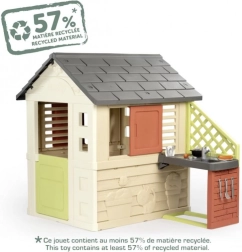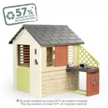Das Gartenhaus gehört zur umweltfreundlichen Serie Smoby Life, bei der 57 % des Materials aus recycelten Quellen stammen. Durchdachte Details wie geprägte Blumen- und Tiermotive fördern Wahrnehmung und Kreativität. Das Spiel im Haus unterstützt zudem Zusammenarbeit, Kommunikation und gesunde Bewegung an der frischen Luft.