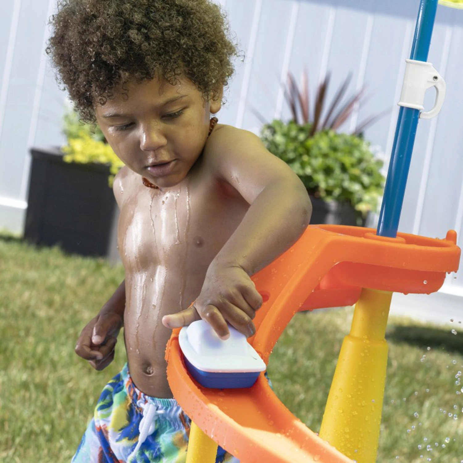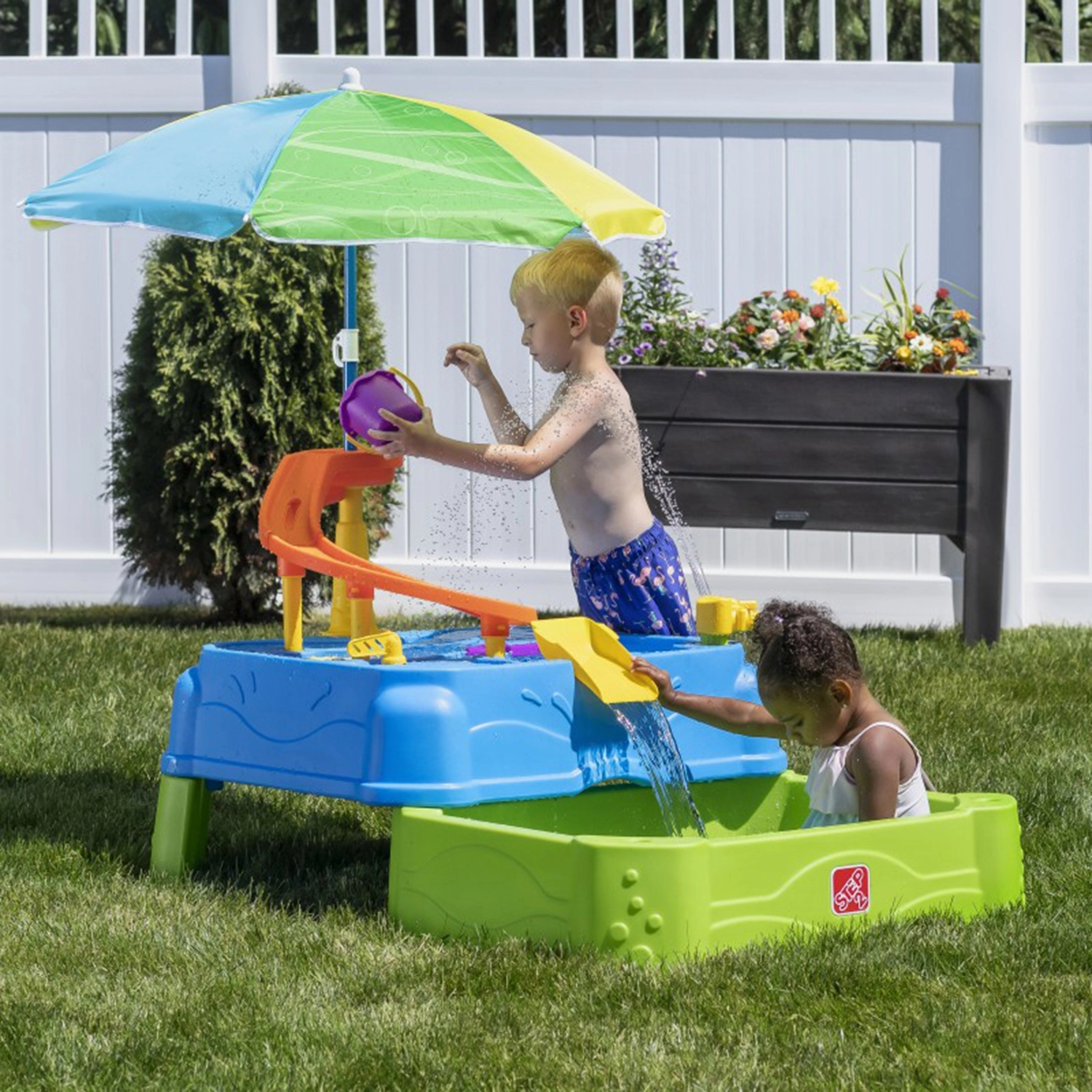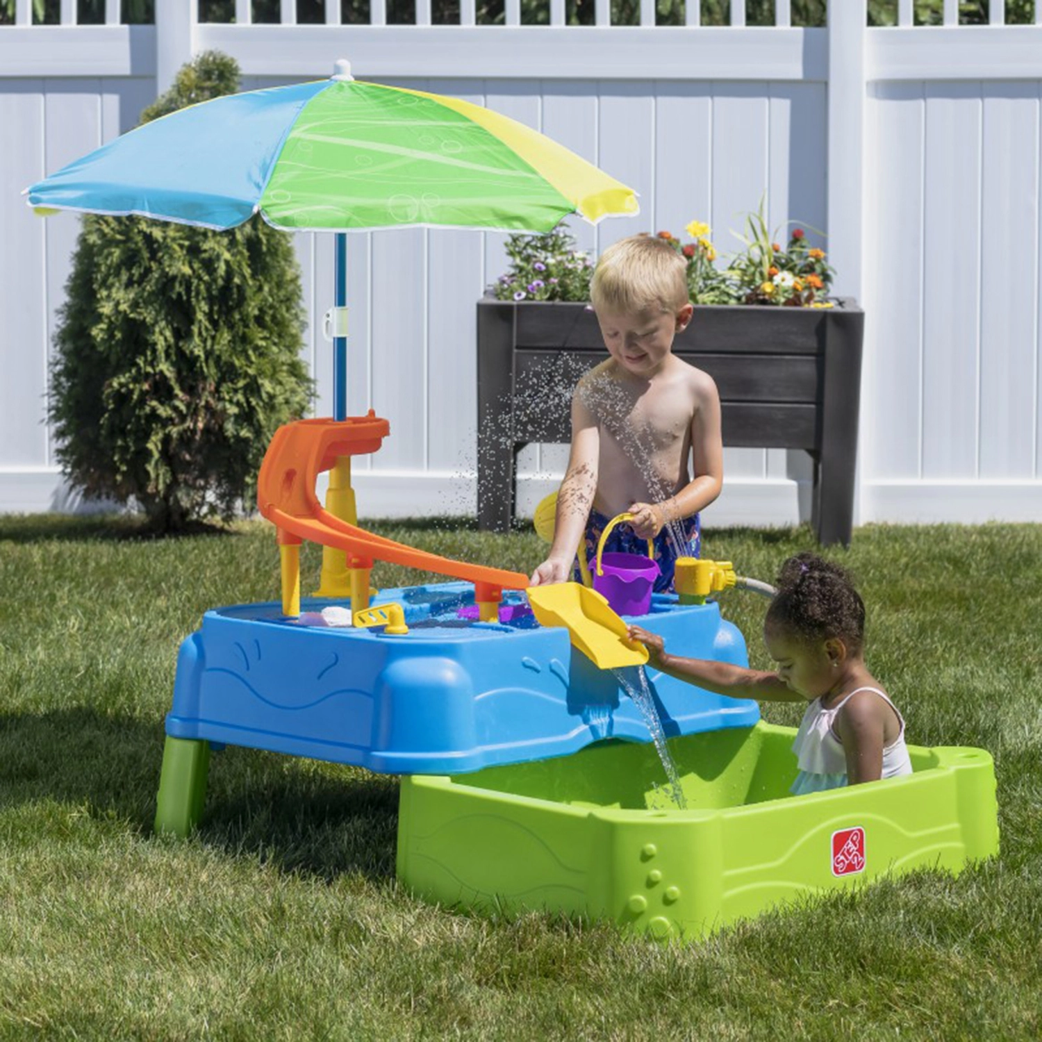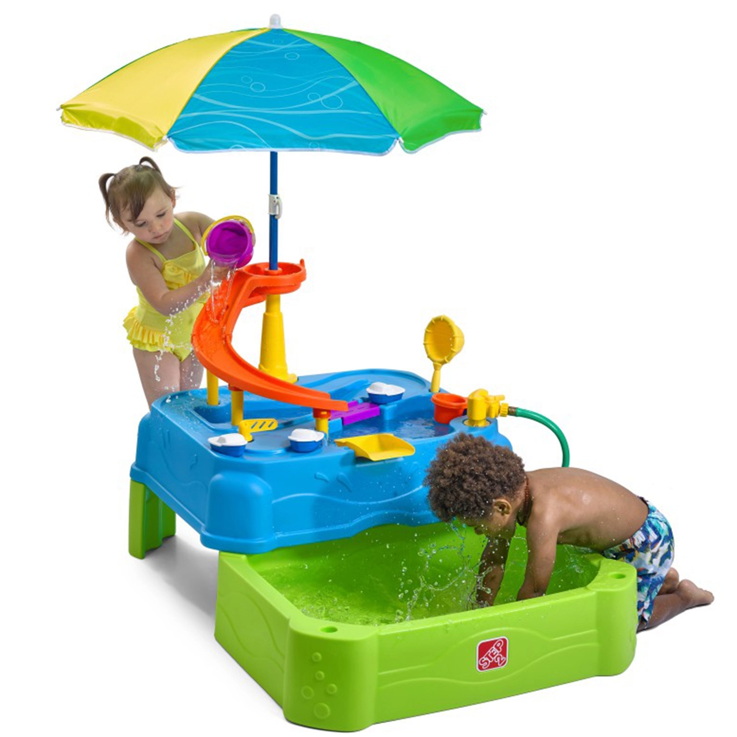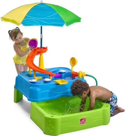 Wasserspieltisch mit Rutsche und Sonnenschirm