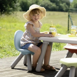 Perfekte Wahl fürs Kinderzimmer, Spielräume, Kitas sowie für Garten oder Terrasse – bequemer Sitz beim Spielen, Basteln und Snacken.