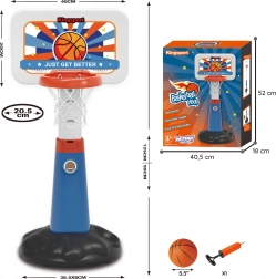 Das Set enthält einen Basketballkorb, einen Ball und eine Pumpe – alles, was ein Kind zum Spielen braucht.