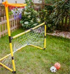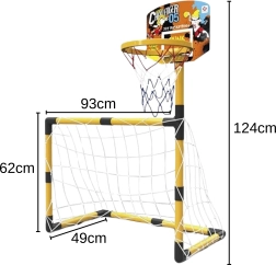 Mit diesem multifunktionalen Set trainieren Kinder Koordination, Präzision und Teamgeist. Das Komplettpaket enthält einen Basketballkorb, ein Fußballtor, Bälle und eine Pumpe – einfach auspacken und losspielen. Dank der robusten und stabilen Konstruktion eignet sich das Set für den Innen- und Außenbereich und bietet eine geringe Geräuschentwicklung bei der Nutzung.