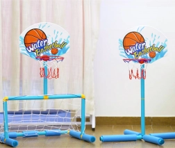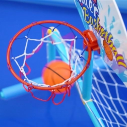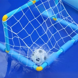 Leichte und stabile Konstruktion mit Schwimmkörpern hält das Set an der Wasseroberfläche. Werft Körbe oder schießt Tore direkt im Wasser – ideal für sommerlichen Badespaß.
