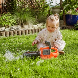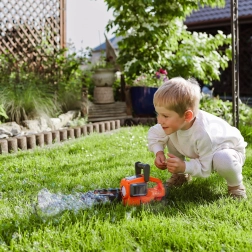 Schneller Wechsel vom Säge-Look zum stylischen Seifenblasenmacher. Ein Spielzeug, zwei attraktive Spielweisen.