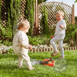 Der drehbare Auslass mit Lichtern erzeugt einen dynamischen Seifenblasenstrom in alle Richtungen – die perfekte visuelle Show für Spiele im Garten und Kindergeburtstage.