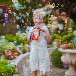 • Effektvolle Lichter und Rotation: fesselnde Lichteffekte und ein dynamischer Seifenblasenstrom.