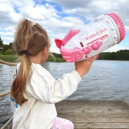 Dank des durchdachten Mechanismus verteilt die Pistole die Lösung gleichmäßig auf alle Düsen und sorgt für einen reichen Blaseneffekt. Die praktische Schale für die Lösung erleichtert das Eintauchen des Aufsatzes. Ebenfalls enthalten sind ein Akku mit USB-Ladung und 2 Füllungen, damit ihr gleich nach dem Auspacken starten könnt.