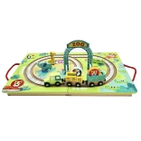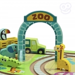 Die bunte Eisenbahnstrecke mit Tieren und dem faltbaren ZOO-Tor regt Geschichten und kreatives Spiel der Kinder an.