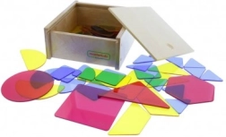 Das Set aus transparenten bunten Platten verschiedener Formen ermöglicht einfaches und leichtes Lernen zum Zusammensetzen geometrischer Formen. Die Teile sind aus haltbarem Acryl in präzisen Farben gefertigt, was es Kindern auch ermöglicht, Kenntnisse über Farbvermischung zu erlangen, z.B. Rot + Gelb = Orange. Ideale Kombination mit der LED-Lichttafel Masterkidz Education. Das Set wird in einem robusten Holzgehäuse geliefert, was die Lagerung erleichtert.