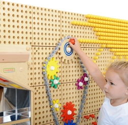 Verwandeln Sie die Wandtafel in eine interaktive Werkstatt. Dieses 79-teilige MASTERKIDZ-Set enthält verschieden große Zahnräder, Ritzel, eine Kette und Montageelemente, mit denen Kinder ganz leicht ihr eigenes Räderwerk zusammenbauen. Mit den speziellen Masterkidz-Schrauben befestigen sie die einzelnen Teile an der STEM-Tafel, drehen an der Kurbel und beobachten, wie der gesamte Mechanismus in Bewegung gerät.
